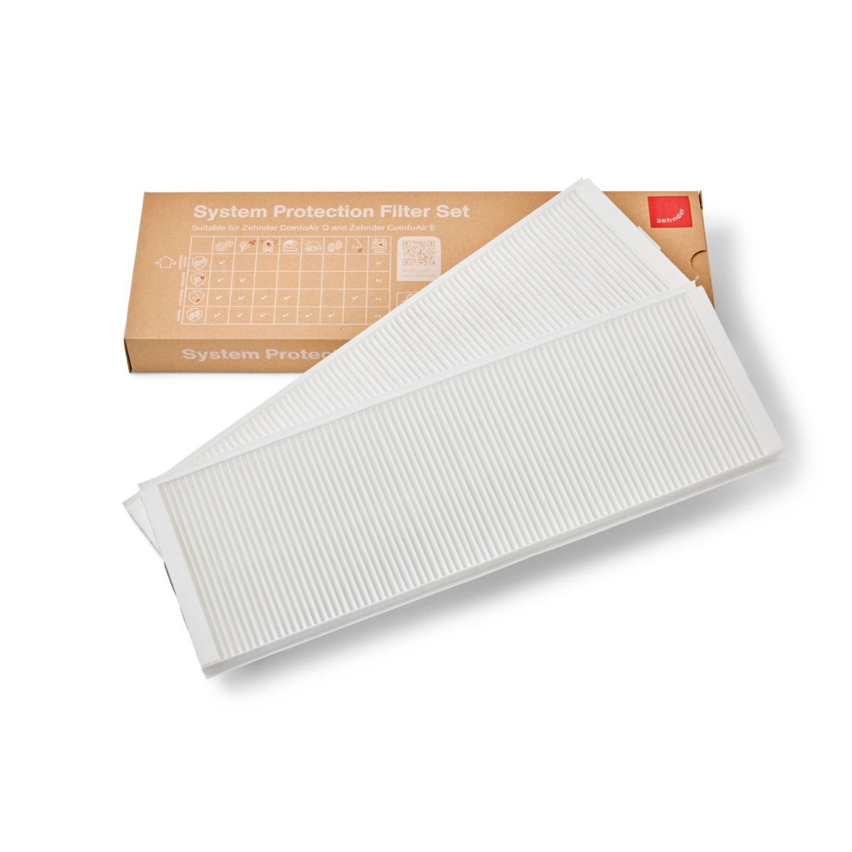You will receive: 2x Panel filter Z/Line cardboard 160x500x23 mm. G4 | Original Zehnder filter